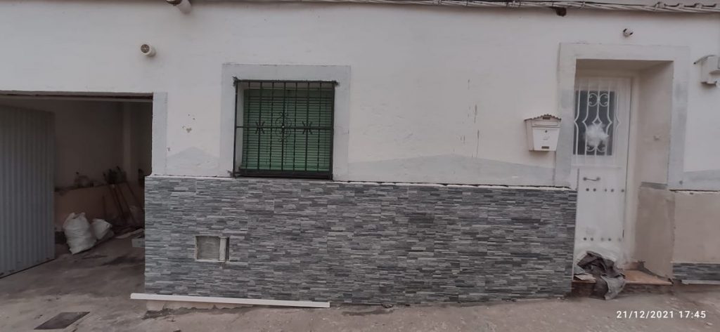 Trabajo de revestimiento y alicatado realizado en fachada en una vivienda en la calle Escuela, en Madrid. La fachada era antigua por lo que no tenía filos ni niveles, hubo que picar la superficie para retirar la pintura que había, que era cal. Se rayó y se depuraron las sobrantes para que se fijara bien […]
