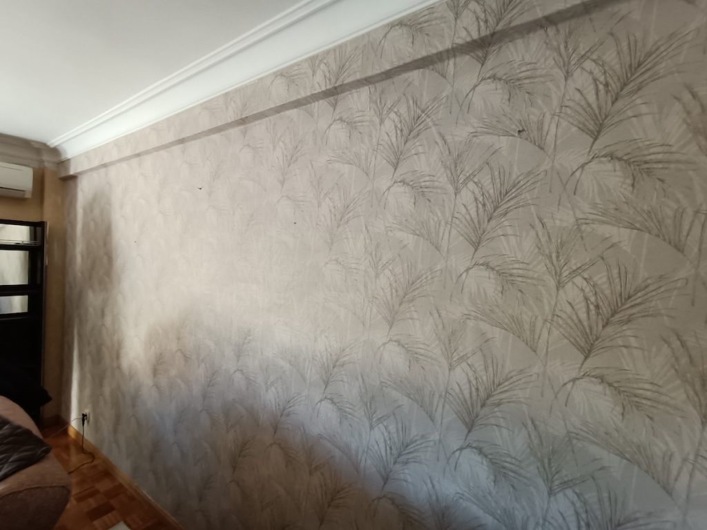 Trabajo realizado en una vivienda en el barrio de Moratalaz (Madrid) de la abuela de uno de los trabajadores de la empresa. La clienta no quiso que se realizara el trabajo que normalmente se hace para cambiar un papel pintado por otro, es decir, retirar el papel antiguo, sanear, alisar y perfeccionar la pared e […]