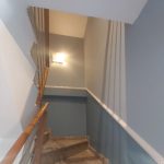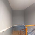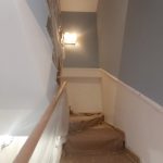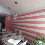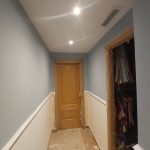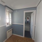 Proyecto completo de pintura en un chalet en Guadalix de la Sierra, con estilos variados en cada dependencia y lacado en blanco de puertas, rodapiés y cercos, alisado de zócalo y combinación de azules