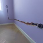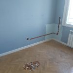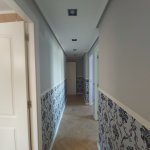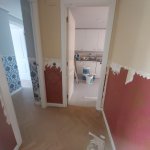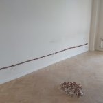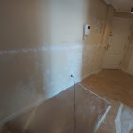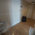 El propietario acababa de comprar la vivienda y quería dar un cambio radical a la casa, la entrada y el pasillo tenía un papel a la altura del zócalo con una moldura de madera a unos 120 cm de altura a la cual quitamos por completo junto con el papel que tenía, nos comentaba que quería modificar unos enchufes de las habitaciones y del salón, asi que tuvimos que hacer rozas, redirigir los enchufes a las posiciones donde los quería la mujer, siempre respetando la altura que por normativa tienen que tener.