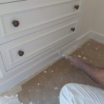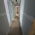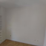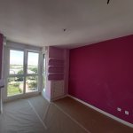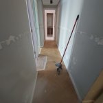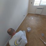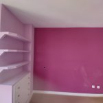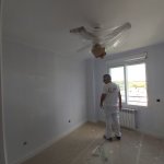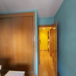 Empezamos del fondo hacia fuera con la pintura como acostumbramos hacer siempre, dando tiempo a que se secara lo saneado correctamente. Para esta vivienda usamos una sola tonalidad excepto para el salón que lo pintamos totalmente blanco para dar mayor luminosidad, más tarde pintamos y saneamos los rodapiés con un esmalte blanco satinado que junto con las puertas daba un toque moderno a toda la vivienda.