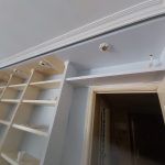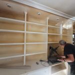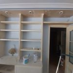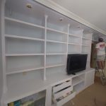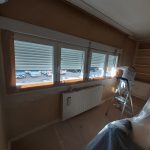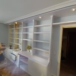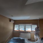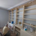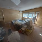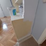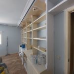 Los humos de cocina, vapores de los baños, tabaco, manchas de humedad…etc, todo afecta por el paso del tiempo en las viviendas. En esta vivienda tuvimos que aplicar un esmalte al agua en las paredes para cubrir ciertas manchas amarillas y por eso mismo es mejor usar calidades buenas de pintura en nuestras paredes, ya que hace que duren más nuestros colores, pintamos una habitación y salón en gris perla junto con un mural que restauramos, fondos en color gris y mural con esmalte blanco para que fuera más resistente, entrada y segunda habitación una tonalidad de gris, pero con una chispa de ocre dando un toque de amplitud y modernizando los habitáculos, en la cocina y los dos baños pusimos velo quedando totalmente nuevos, luego  pintamos las puertas armarios rodapiés con pintura de poliuretano para una mayor resistencia y duración. Para terminar la última mano con laca satinada quedando las puertas y armarios como si se acabarán de comprar,< pero todavía faltaba algo> nos decía José el cliente🤔, los muebles de los baños que fue el toque final para dejar la vivienda totalmente finalizada.