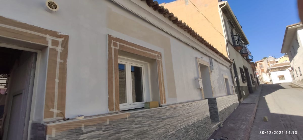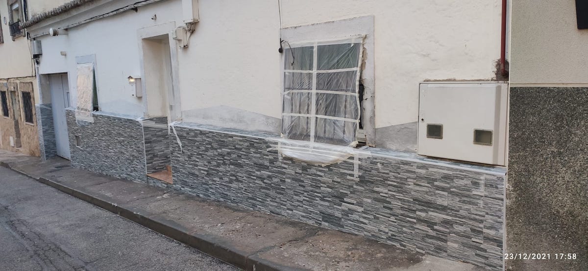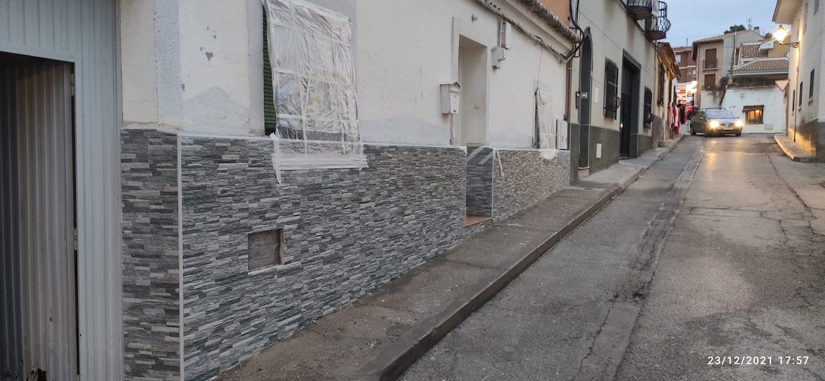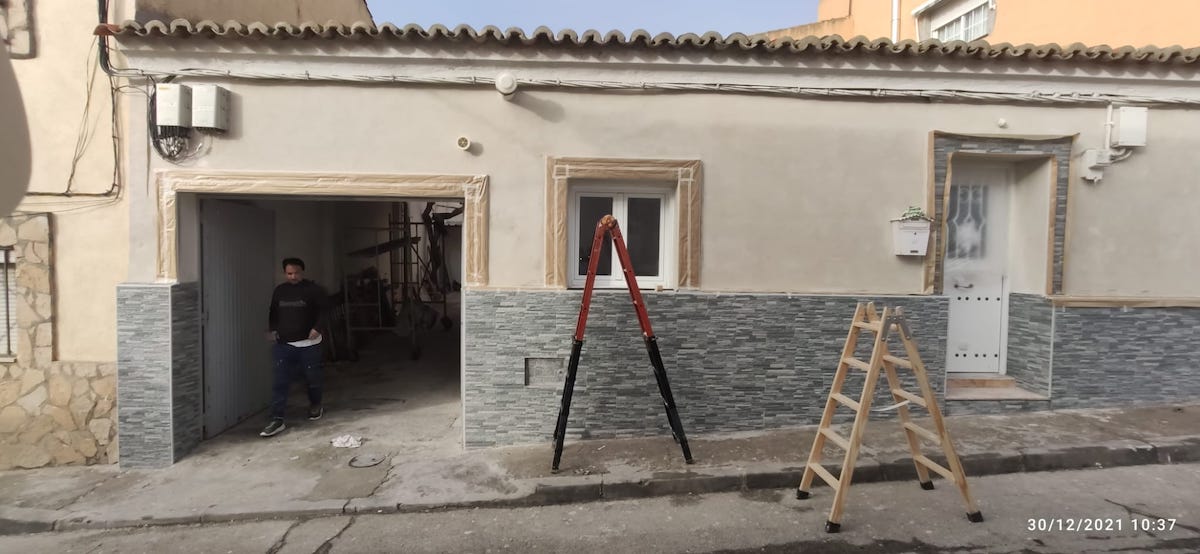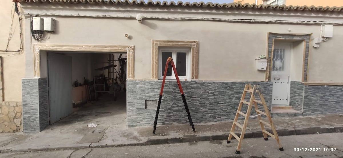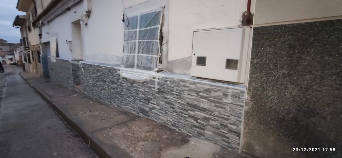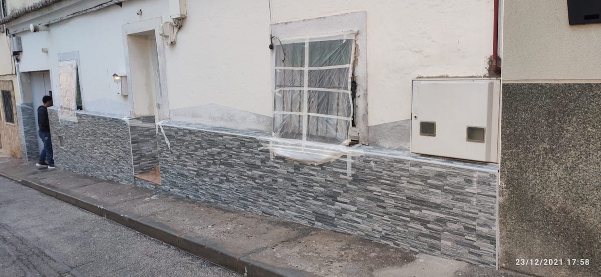 Trabajo de revestimiento y alicatado realizado en fachada en una vivienda en la calle Escuela, en Madrid.