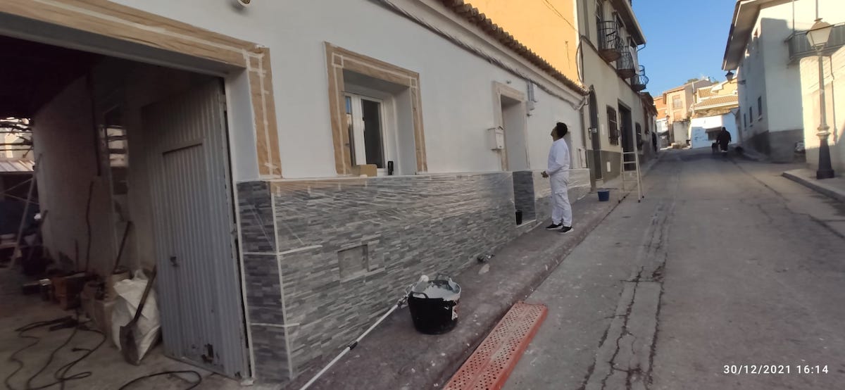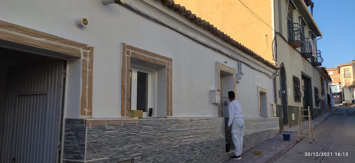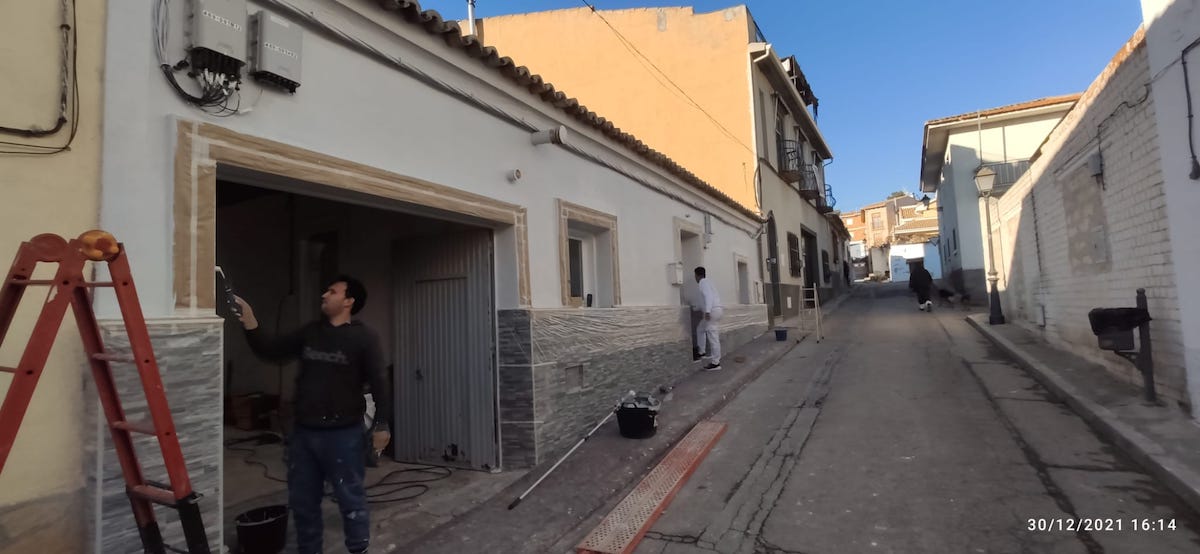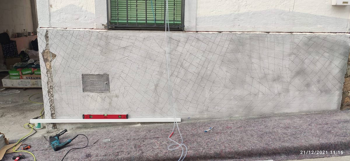 La fachada era antigua por lo que no tenía filos ni niveles, hubo que picar  la superficie para retirar la pintura que había, que era cal. Se rayó y se depuraron las sobrantes para que se fijara bien el nuevo producto.